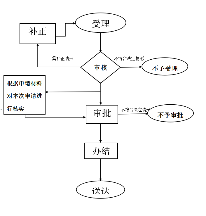 辦理流程:預約-取號-申請-受理-審核-審批-辦結-送達
