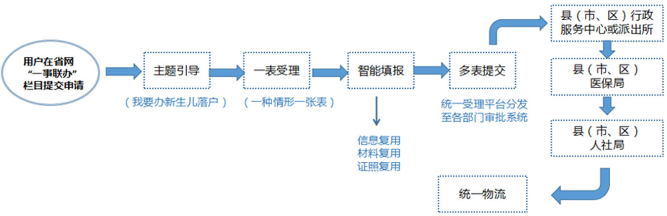 溫馨提示:此項網(wǎng)上聯(lián)辦服務,即通過政務數(shù)據(jù)共享,實現(xiàn)部門信息核驗,您在辦理新生兒戶口登記時,可同步申辦城鄉(xiāng)居民基本醫(yī)療保險參保登記和社會保障卡,通過“多表合一、智能填報”,由“填表”向“補表”“審表”轉(zhuǎn)變,實現(xiàn)“關聯(lián)事項、一表申請、一鏈辦理”。