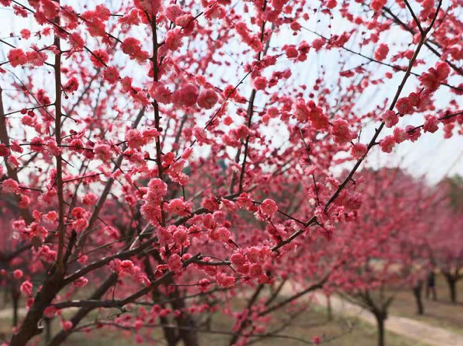 農歷正月初七,在炎帝老家隨縣紫薇園景區,漫山遍野的“百畝梅花”競相綻放,十里飄香,引得無數游人流連忘返。
