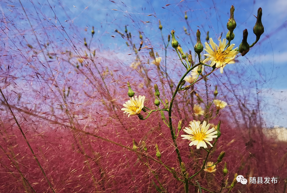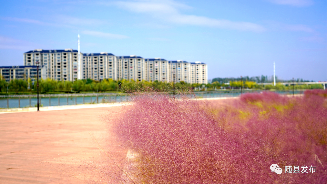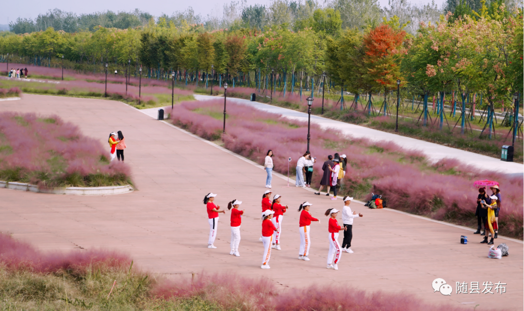 金秋十月,隨縣烈山湖東岸的粉黛亂子草正值盛花期,粉紅色的花海如油畫一般,置身其中宛若走進童話世界,讓人瞬間少女心爆棚。