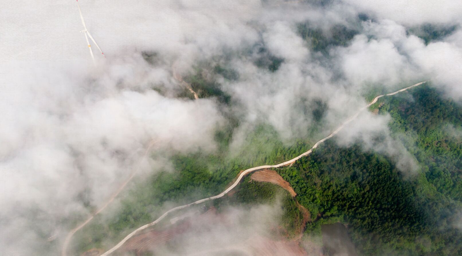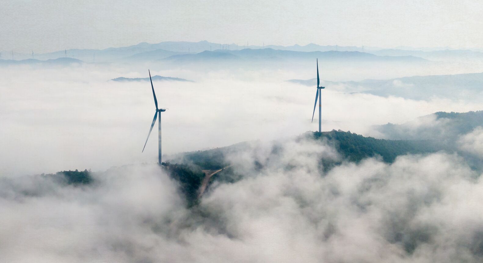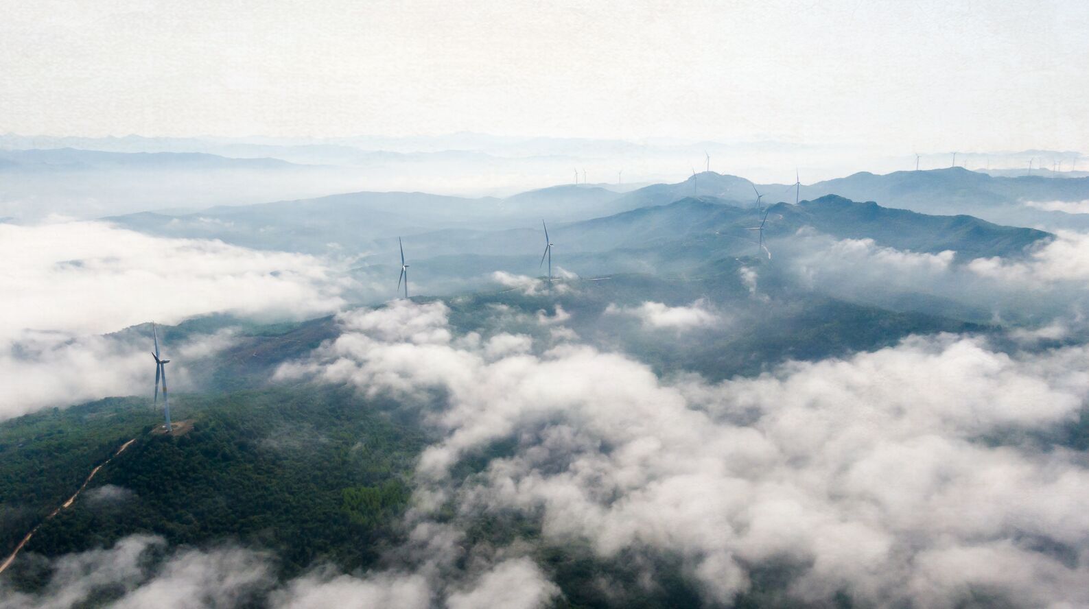 人間五月,春色正濃。湖北省隨州市隨縣高城鎮三家寨風電場風力發電機組矗立在高山草甸之上,點綴在藍天白云間,微風吹來,云霧彌漫,宛如朦朧仙境,壯美如畫。