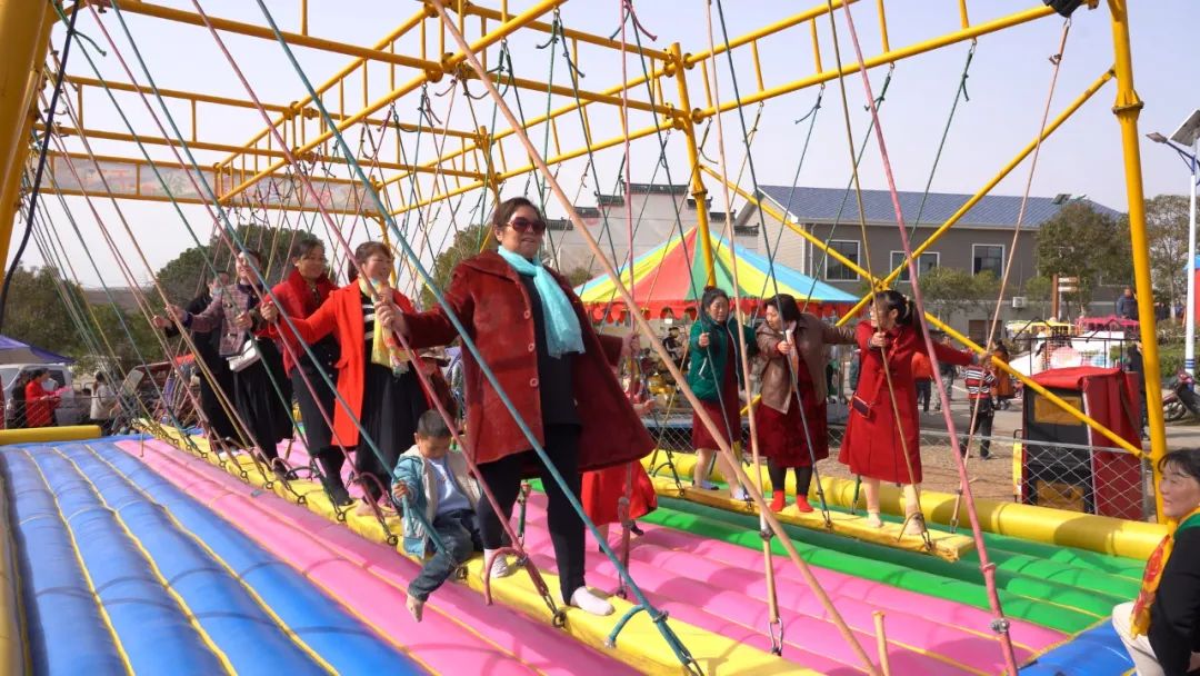 山間桃花盛開,園內人氣火爆。舞臺上舞蹈《鳳舞楚天》、雜技《神奇呼啦圈》、絕技絕活《激情穿越》等精彩紛呈的節目表演吸引了眾多游客駐足欣賞,舞臺邊彩虹滑道、旋轉木馬、套圈等各種親子游樂項目生意火爆,還有臭豆腐、羊肉串、冰淇淋等特色小吃讓人垂涎欲滴。
