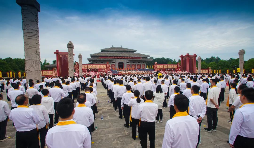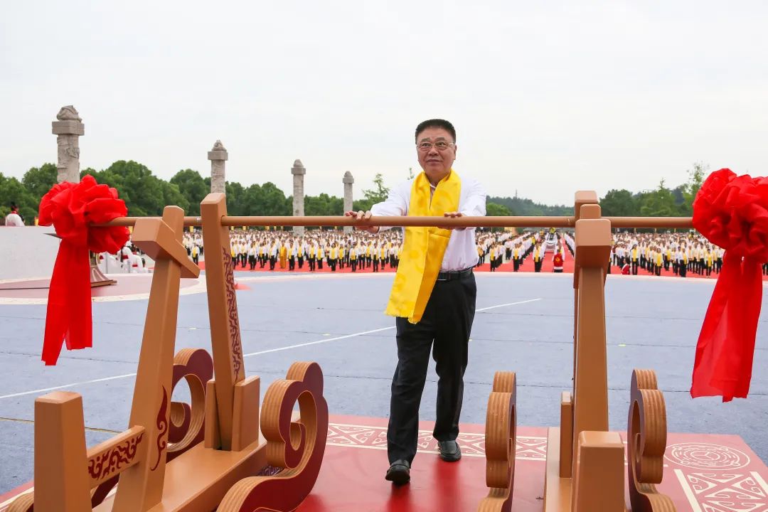 歲次甲辰,時在孟夏。九州太平,四海清嘉。華祖門前,排仗迎迓,行禮如儀,恭迎海內外炎黃子孫謁祖尋根。在炎帝神農故里照壁處,嘉賓們整理衣冠,佩戴黃絲巾,在幡旗方陣和奉祀方陣的引導下,經過四牛耕作石雕、九拱橋、華夏始祖門、圣火臺、七步登天臺,行至莊嚴肅穆的謁祖廣場,面向炎帝神農大殿肅立。