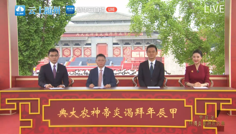大典通過中央廣播電視總臺中文國際頻道、湖北衛視以及新華網、央視網、央廣網、湖北日報、湖北廣播電視臺、澎湃新聞、極目新聞、隨州日報、隨州廣播電視臺等媒體平臺同步直播。