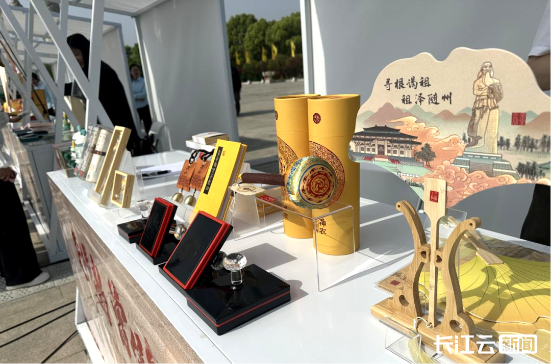 活動現場熱鬧非凡,非遺文創集市超吸睛!近30個攤位上,編鐘造型、炎帝造型的玩偶、冰箱貼、胸針等文創產品琳瑯滿目,還有當地非遺美食讓人垂涎欲滴。隨州文化蓋章體驗區更是人氣爆棚,游客們紛紛排隊打卡。